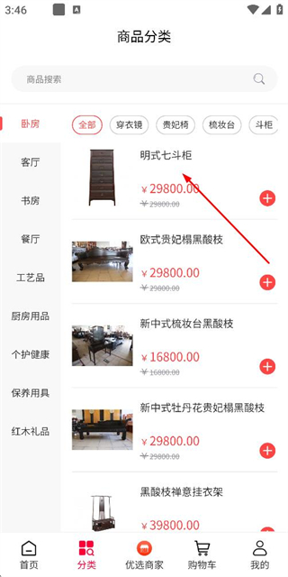 2、在分类列表页面点击目标商品,进入该商品的详情页面。