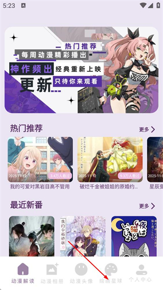 1、在动漫APP首页,点击底部的绘画星球选项,进入绘画星球页面。