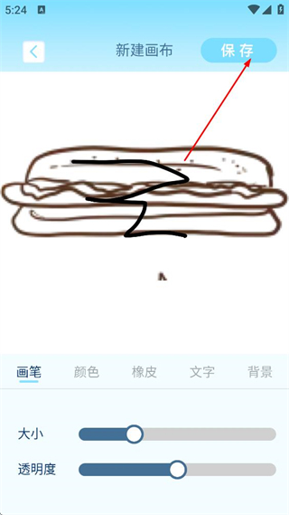4、在新建画布页面完成绘制后,点击右上角的保存的按钮,保存创作内容。