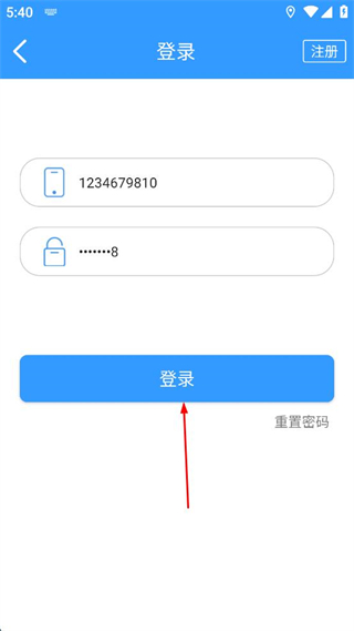 4、确认手机号和密码填写完毕后,点击页面中的登录按钮完成登录操作。