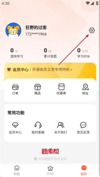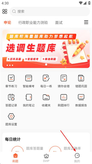1、进入刷题页面后,点击底部的我的选项,可进入个人中心页面。