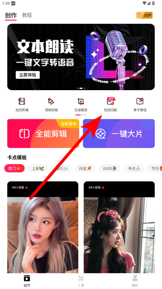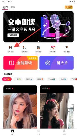 1、打开APP,用户需点击视频剪辑的功能选项。