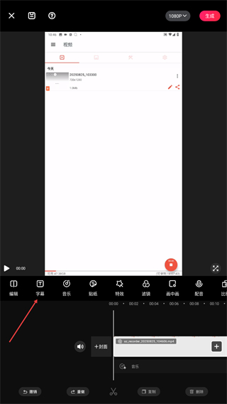 3、进入编辑的页面内,点击工具栏中字幕的按钮。