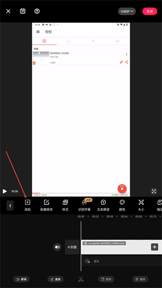 4、在字幕工具的页面内,选择并点击添加的功能按钮。