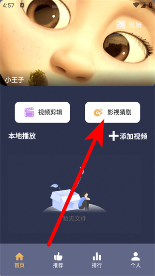 1、在freeok首页页面,点击影视猜剧,进入猜剧答题页面。