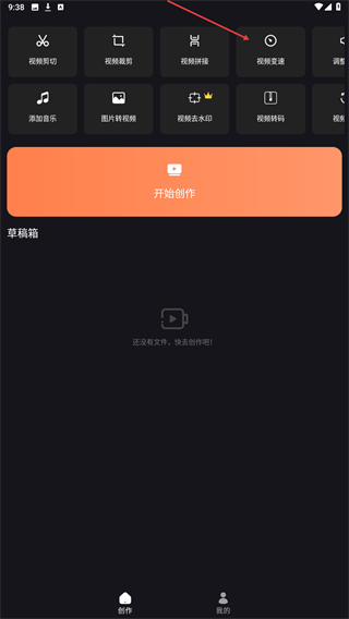 1、启动好拍视频编辑器,进入时点击上方视频变速的按钮。