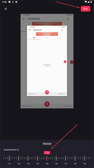 3、跳转至变速页面内,拖动下方的变速按钮再点击导出即可。