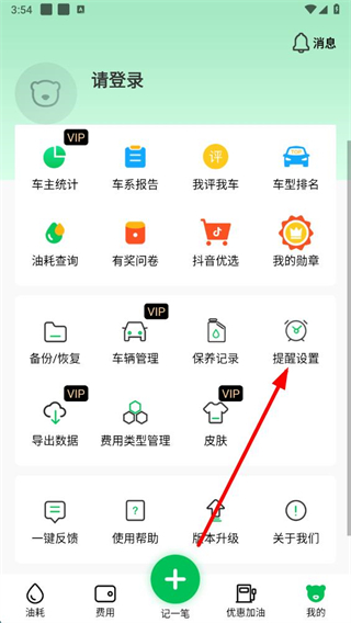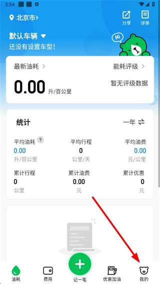 1、打开小熊油耗app,在油耗页面点击右下角我的选项,进入个人功能页面。