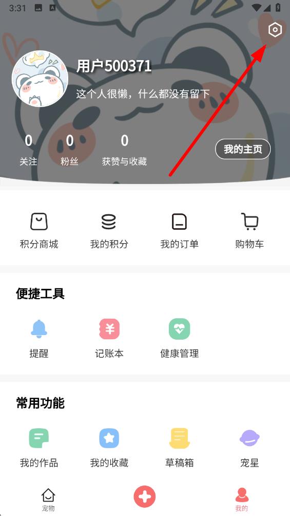 2、在个人页面中,点击右上角的设置图标进入设置界面。