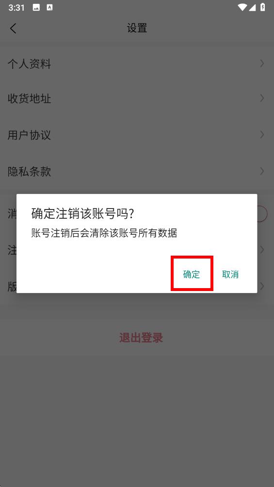 4、在弹出的确认注销账号提示框中,确认账号注销后的数据清除提示,点击确定即可完成账号注销。