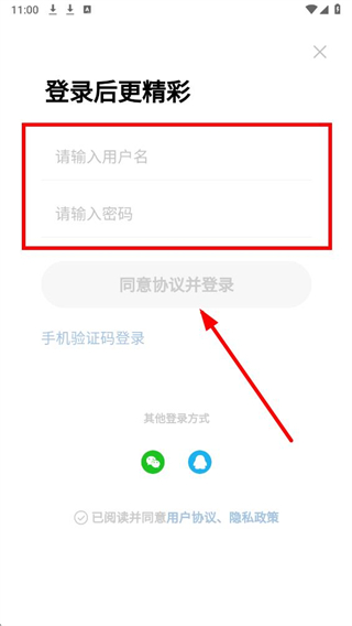 3、在密码登录页面,依次输入用户名与密码,确认协议勾选后,点击同意协议并登录完成操作。