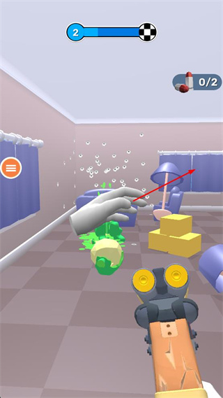 3、射击目标后,跟随指引操作,移动视角并瞄准场景内物品,继续推进关卡进程。
