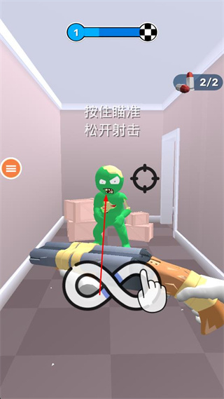 首个关卡初始武器为一把散弹枪,无需复杂准备流程,点击屏幕任意位置就能进入房间开启战斗,快速开启火柴人战斗之旅,轻松熟悉基础玩法。