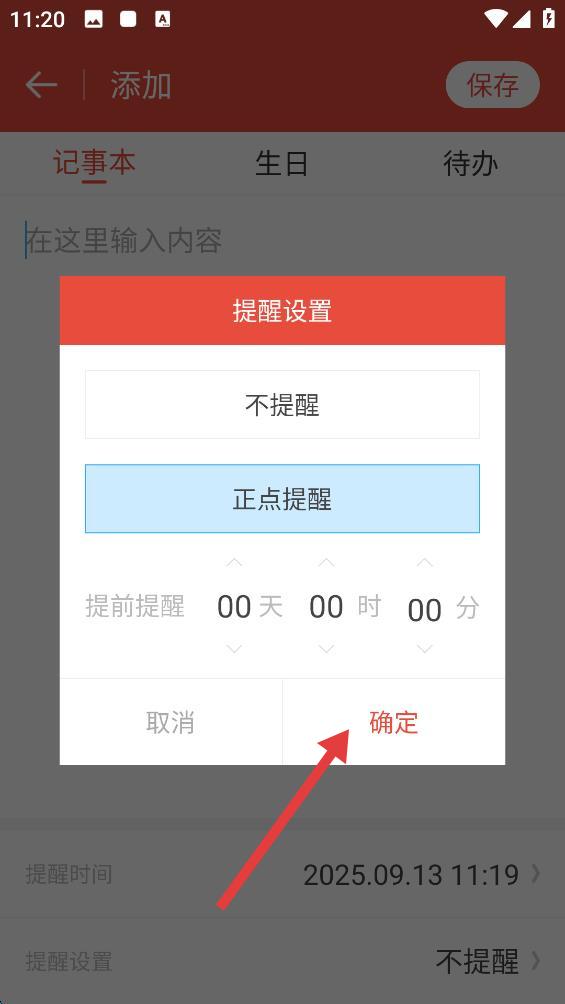3、在弹出的提醒设置窗口中,选择并点击正点提醒。