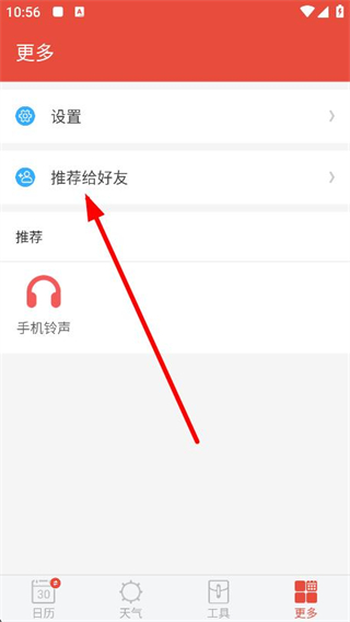 2、进入更多页面,找到并点击上方推荐给好友选项。