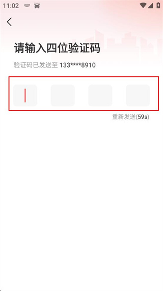 4、进入验证码输入界面,在对应输入框填写收到的四位验证码完成验证步骤。