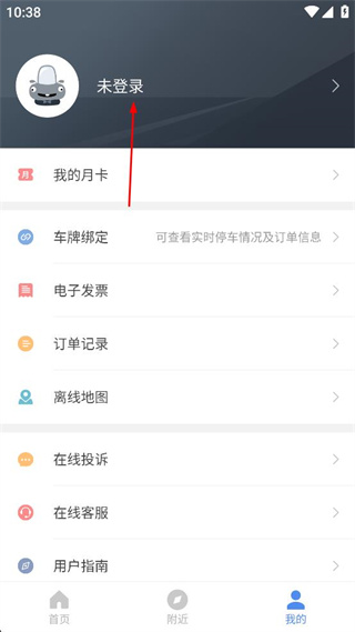 1、打开停车服务APP首页,找到底部导航栏的“我的”选项,点击进入个人页面。