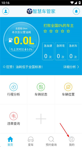 1、打开智慧车管家APP首页,找到底部导航栏的“我的”选项,点击进入对应页面。