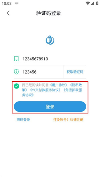 4、勾选同意相关协议条款,点击“登录”按钮,完成APP账号的登录操作。