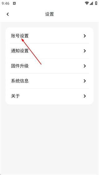 3、在设置页面,点击账号设置选项,可进入账号设置页面。