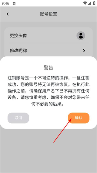 5、在弹窗中,点击确认按钮即可完成账号注销操作。