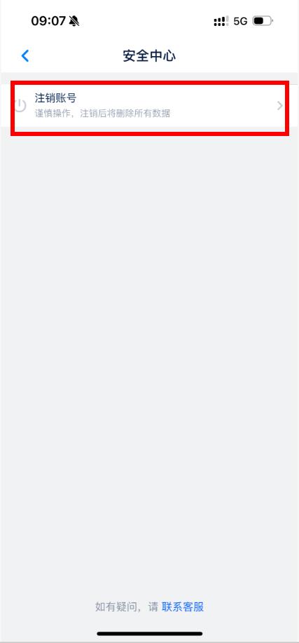 5、在安全中心页面,点击注销账号,按提示谨慎操作。