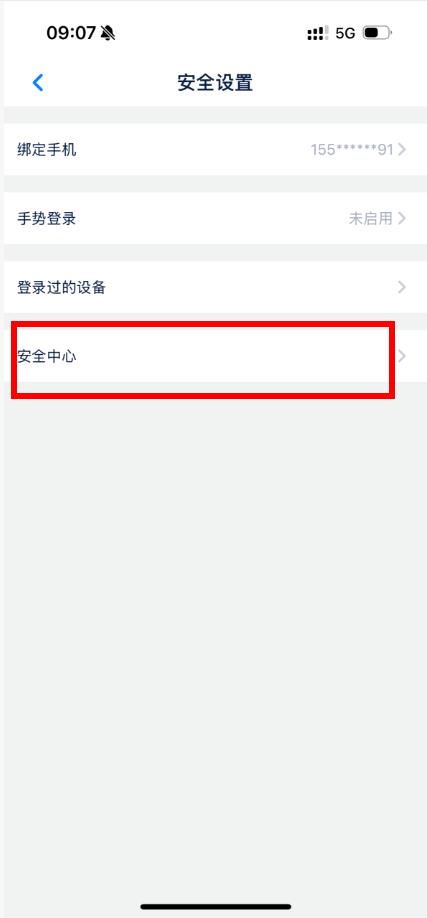 4、进入安全设置页面,点击安全中心。