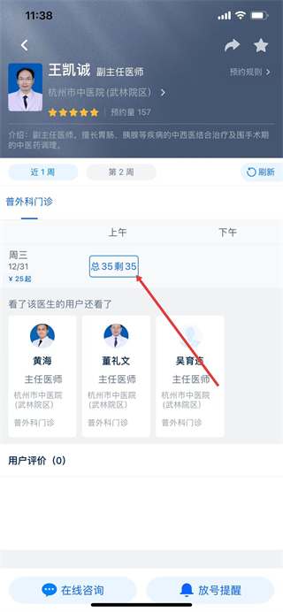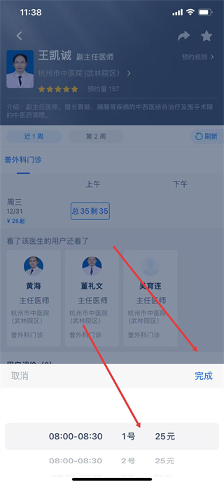 6、在医生排班页,选择就诊日期与时段,点击对应号源。