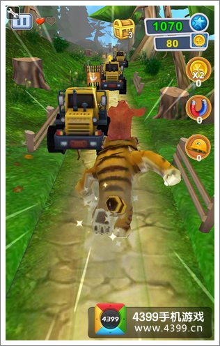 游戏操作简单,跟普通的跑酷游戏差不多,玩家只需向上滑动屏幕,便可控制熊大跑动或者跳跃,越到低障碍时,向下滑动屏幕,便可操控熊大向下滑行躲避障碍。