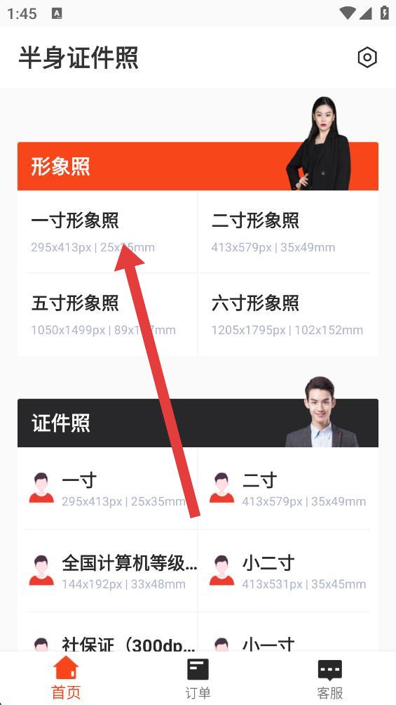 3、定制证件照的操作十分简单,只需要自己选择证件照尺寸即可;