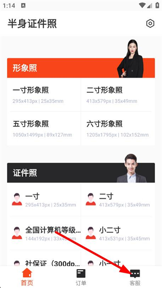 1、打开半身证件照App,点击页面底部右侧的客服按钮。