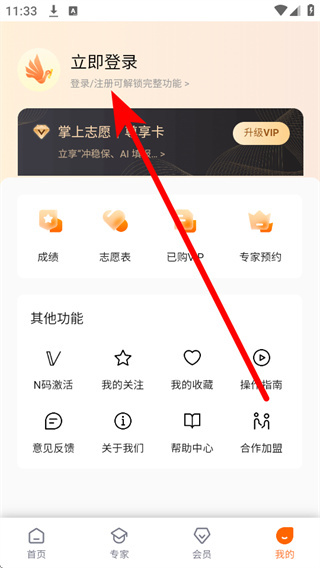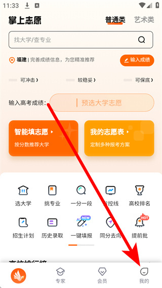 1、打开掌上志愿,点击底部导航栏的我的,进入个人中心页面。