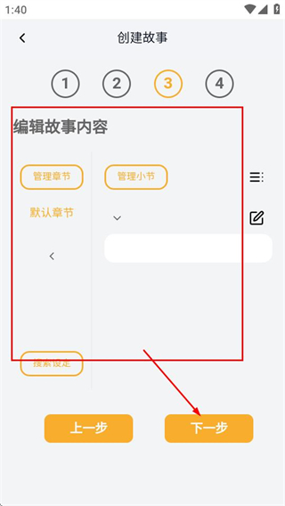 5、在内容编辑页面,编辑故事内容后点击下一步按钮,进入最终确认页面。