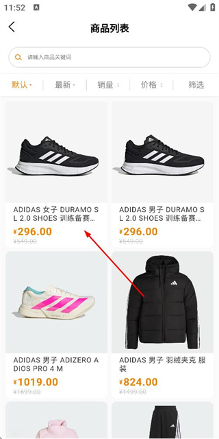 3、在商品列表页面点击目标商品,进入该商品的详情页面。