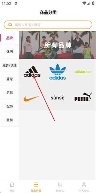 2、在商品分类页面点击目标品牌选项,进入该品牌的商品列表页面。