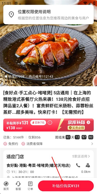 3、在商品详情页面点击补贴价购买按钮,完成该商品的购买流程。
