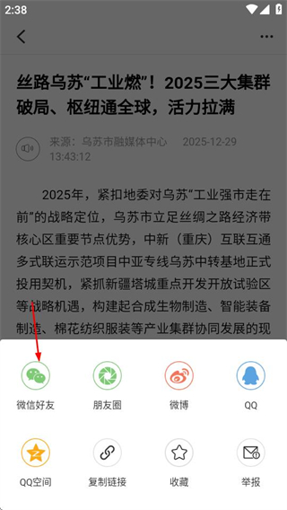 3、在分享面板中,选择目标分享渠道,即可分享该新闻内容。