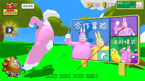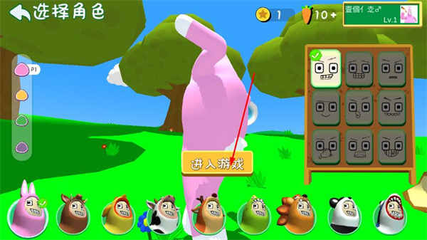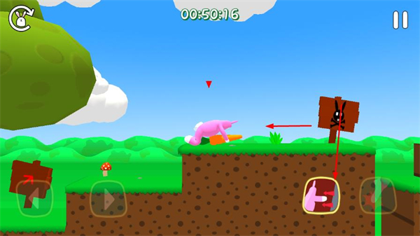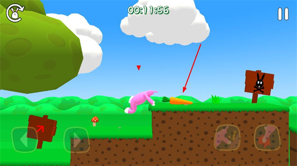 3、进入关卡后,通过左侧方向按键控制兔子人移动,靠近场景中的萝卜。