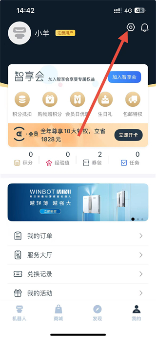 1、打开科沃斯机器人APP,在底部导航栏找到我的选项并点击,进入个人页面。