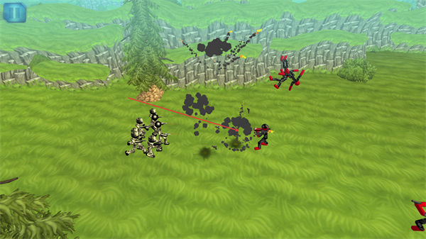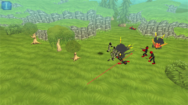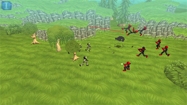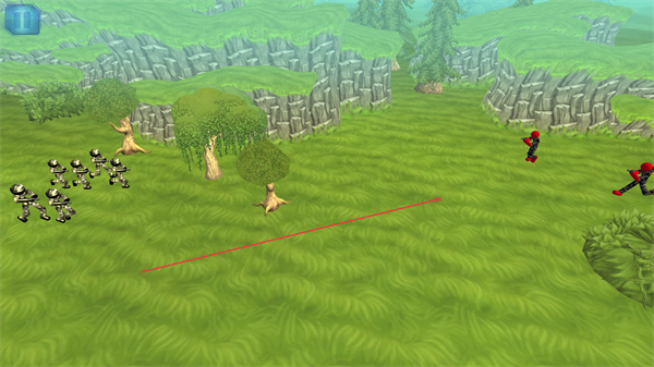 1、操控黑色火柴人军团移动,向红色敌方单位方向行进,准备发起战斗。
