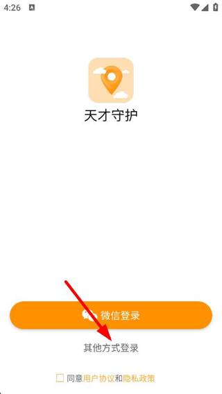 1、打开天才守护App,在登录页面点击其他方式登录。