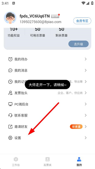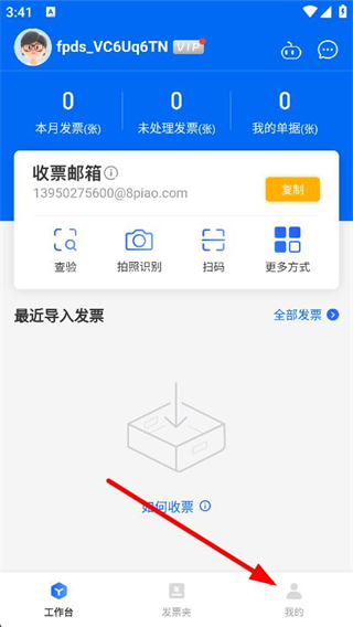 1、打开发票大师App,点击页面底部最右侧的我的选项。
