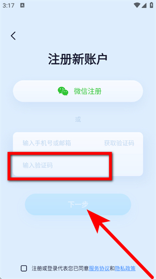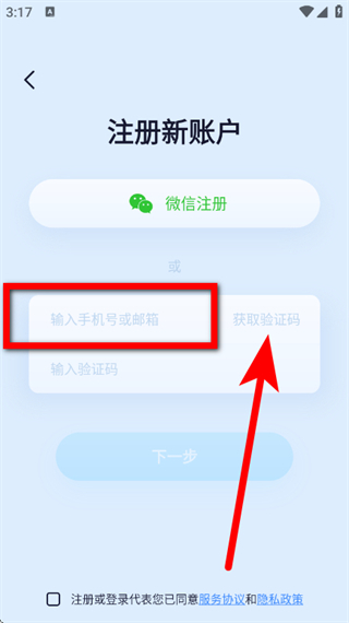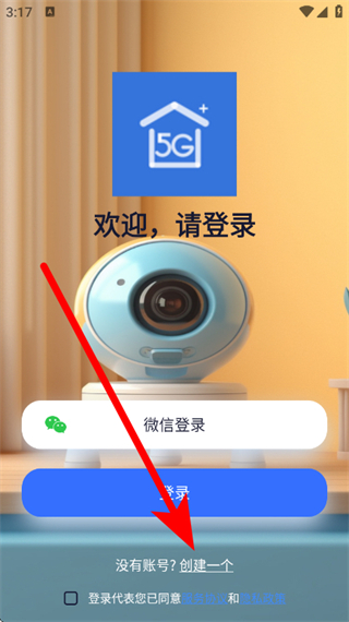 1、在5G看家的登录页面,点击创建一个,进入注册新账户页面。