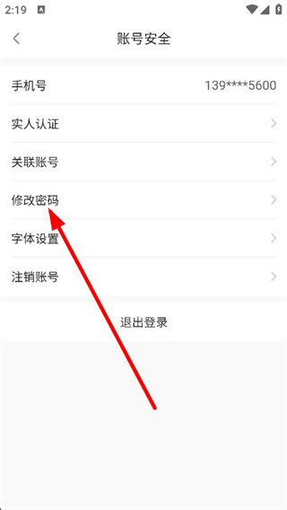 3、进入账号安全页面后,选择并点击修改密码选项。