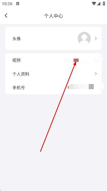 3、进入个人中心页面后,点击昵称选项。