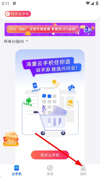 1、打开川川云手机,点击底部我的选项。