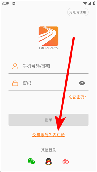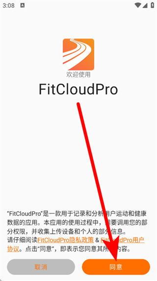 1、打开fitcloudpro,在弹窗中点击同意,进入登录页面。