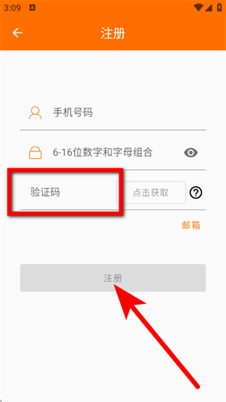 4、在输入框,输入验证码,点击注册,完成账号注册。