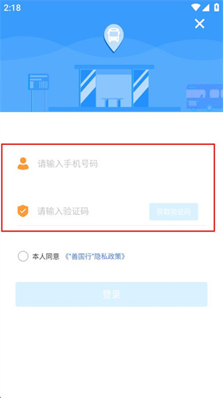 3、进入登录界面后,在对应输入框填写手机号码,再获取并填写验证码信息。