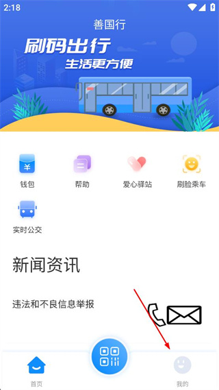 1、打开善国行APP首页,找到底部导航栏的“我的”选项,点击进入个人页面。